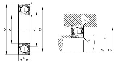 SKF 6201-2Z/VA201 rodamientos Dibujo técnico: